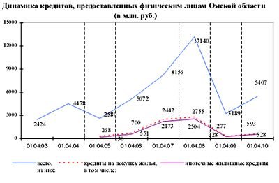 Согласно Бюллетеню банковской статистики Главного Управления ЦБ по Омской области, в I квартале 2010 года омские банки выдали 529 млн рублей, таким образом по объему выданных ипотечных кредитов Омская область занимает 6 место в Сибири.